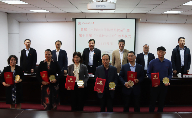 5月7日上午,首届“卢锦梭师德楷模奖教金”暨第十四届“卢锦梭奖学金”颁奖仪式在我校勤政楼第四会议室举行。校党委副书记陈广文,化学化工学院1978级校友、河南枫华种业股份有限公司董事长魏冬青出席仪式并发表讲话。党委教师工作部、人事处,党委研工部、研究生院和相关学院负责人,“卢锦梭教育基金”理事会成员,校友代表,获奖师生,导师代表、研究生代表参加了颁奖仪式。颁奖仪式由校友与基金工作办公室主任孟超主持。