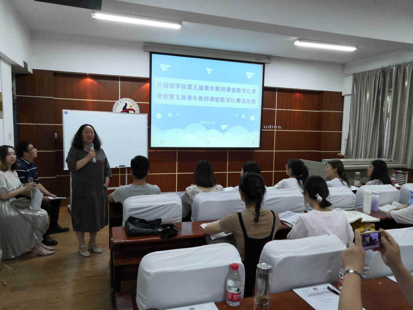 5月24日晚,外国语学院第五届青年教师课堂教学比赛暨第五届青年教师课堂教学比赛选拔赛,在外国语学院国培教室举行。院领导、系部主任及部分教授出席活动。教师及学生代表百余人到场观赛。