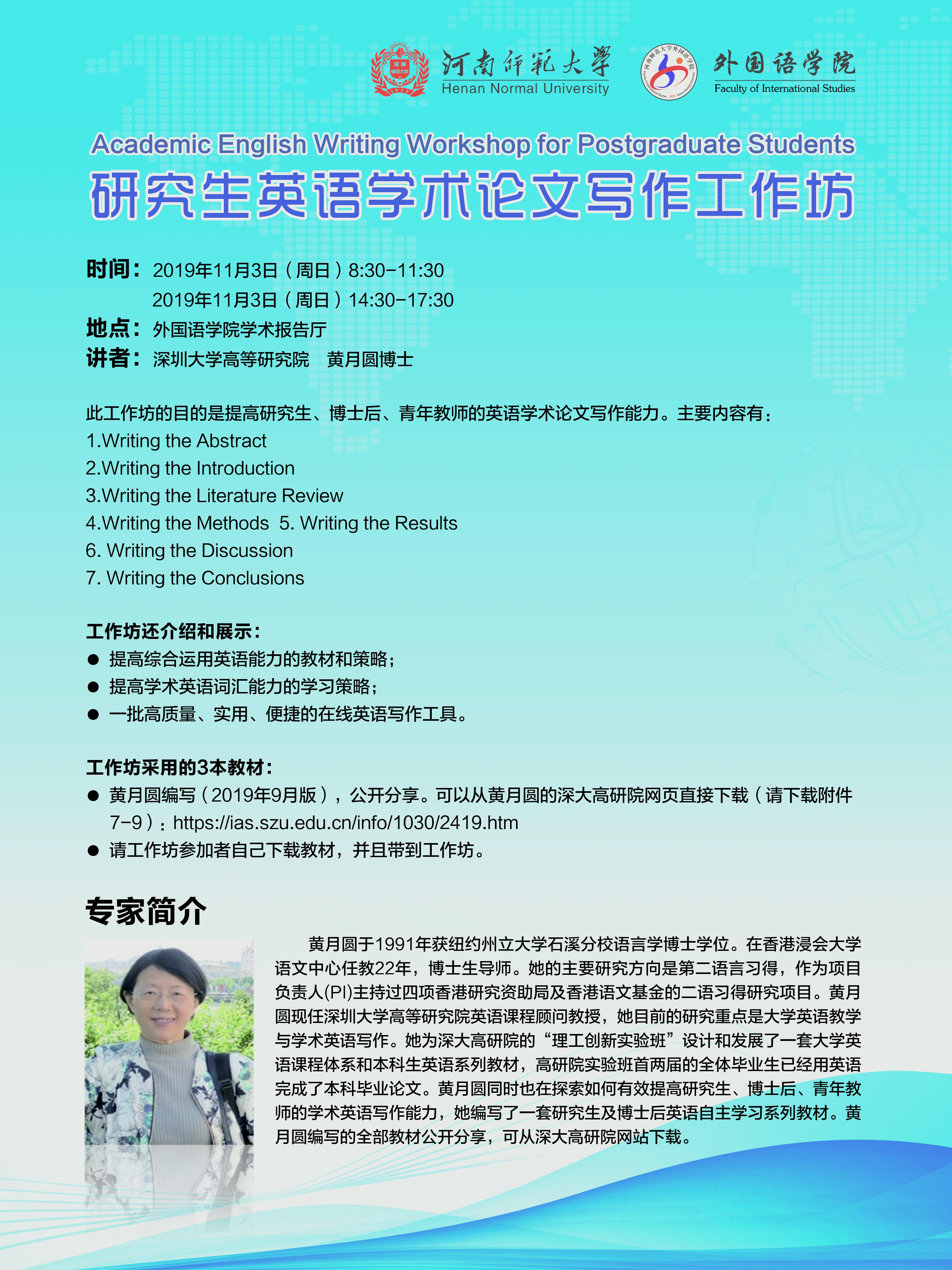 报告题目:研究生英语学术论文写作工作坊