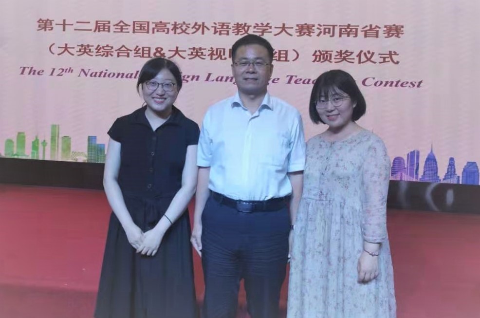 近日,由河南省教育厅主办的第十二届全国高校外语教学大赛河南省决赛在郑州举行。经过两天的激烈角逐,外国语学院派出的两名选手表现突出,从参赛的一百多名教师中脱颖而出,顺利通过复赛进入决赛,并最终获得优异成绩。薛沛文老师以总分第一名的优异成绩荣获一等奖,王东兰老师荣获二等奖(总分第四名)。