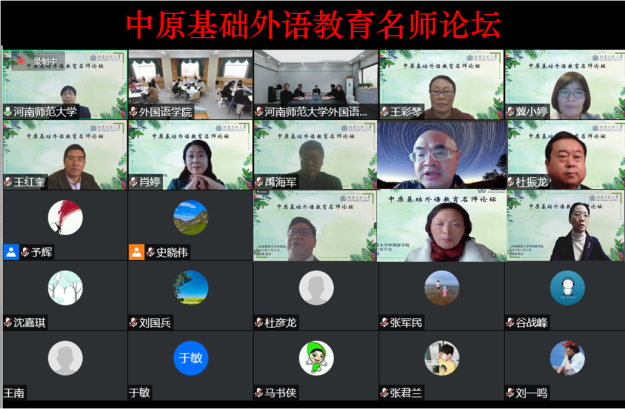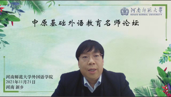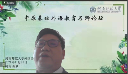 为全面落实立德树人根本任务,大力推进河南省基础教育高质量发展,推动河南省基础外语教育改革与发展,11月21日,外国语学院在线召开“2021年中原基础外语教育名师论坛”。论坛在会议室和智慧教室分设两个线下会场,来自省内外的十名基础外语教育专家和中原名师应邀作专题报告,500余一线英语教师、教育硕士和英语师范生在线参会学习研讨。河南师范大学党委常委、副校长郭海明出席了开幕式并致辞,受邀出席开幕式的嘉宾还有:教师教学发展中心主任王君健、外国语学院副院长娄宝翠、外国语学院副院长张军民、外国语学院教授王彩琴。开幕式由河南师范大学外国语学院院长刘国兵教授主持。