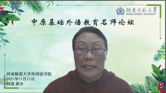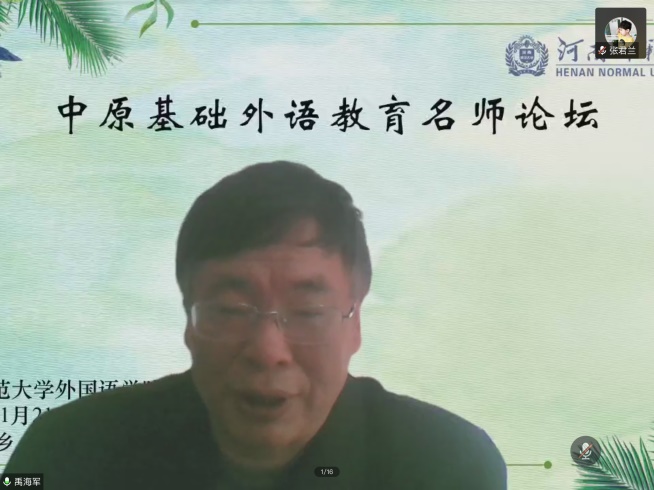 河南省基础教研室英语教研员、河南省首批基础教育指导委员会入库专家、河南省教育学会外语教学专业委员会主任委员,禹海军老师作了题为“视频‘小鸭子上台阶’给基础外语教学带来的启示”的主旨发言,通过视频内容探讨英语教学中教师和学生的角色定位、教与学之间的关系。