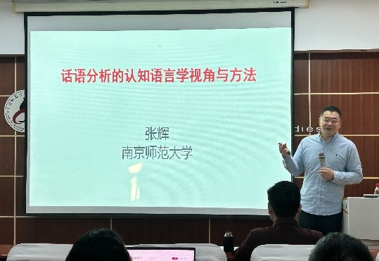 张辉从批评认知语言学理论、研究目标及重要观点入手,围绕批评认知语言学的研究脉络、研究方法等方面进行了阐述,并结合案例进行了详细说明。谈到研究方法时,他强调,对任何研究都没有单一的研究方法可以产生最终的可靠结果,因此批评话语分析研究应运用多种研究方法相互补充。比如,根据原型理论来重新审视批评话语分析的一些传统分析,对语篇进行批评分析的社会学方法和认知语言学方法可以相互补充、相互借鉴。报告结束后,张辉与师生进行了互动答疑。通过此次报告,现场师生对话语分析的认知语言学视角与方法有了清晰的认识,拓宽了学术视野,启迪了科学思维。