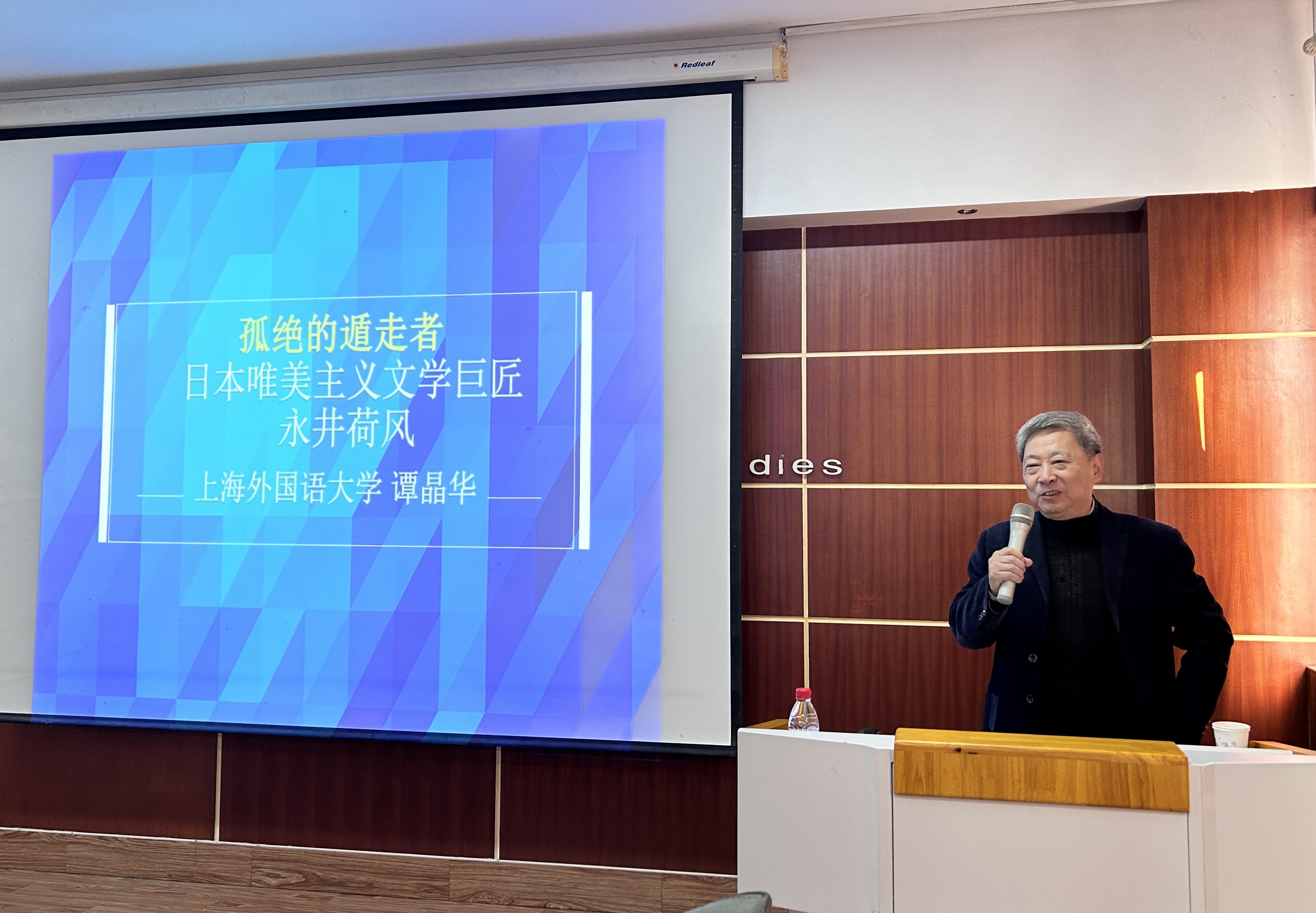 12月5日,应外国语学院邀请,上海外国语学院谭晶华教授在学院国培教室和Common Room作了两场题为“日本唯美派文学的巨匠永井荷风”和“科研项目的选题与项目书撰写”的学术报告,学院百余名师生参会聆听。崇文书院副院长孙士超主持报告。