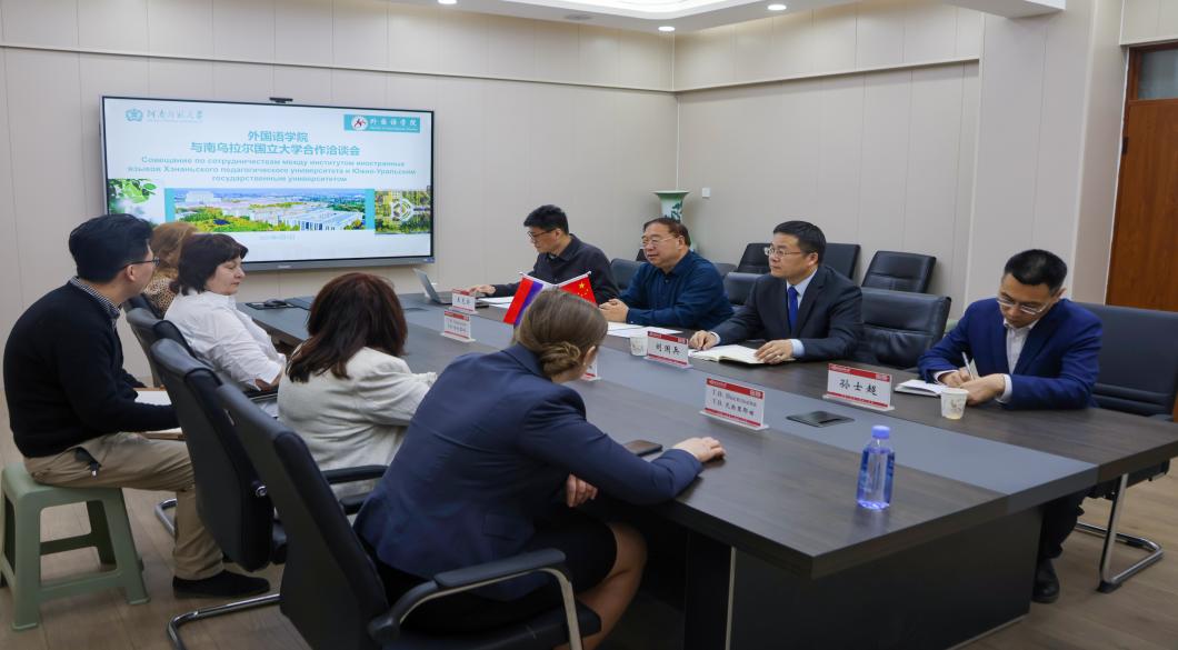 4月6日,我院成功举办了与俄罗斯南乌拉尔国立大学以及南哈萨克斯坦国立师范大学的合作洽谈会。此次会议旨在进一步深化三方在教学、科研及文化交流等领域的合作。出席本次洽谈会的有我校国际合作与交流处副处长焦克非、外国语学院党委书记赵成福、院长刘国兵、副院长孙士超,以及来自俄罗斯和哈萨克斯坦两所高校的代表。