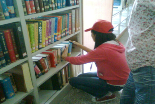 首先,图书馆相关负责人向大家详细讲解了整理图书的方法以及正确的摆放位置,老师讲到,在整理图书过程中,应保持双手干净,并小心取放每一本图书。同学们按照老师所讲方法整理外语类的图书。每位同学都很认真地将图书分类,然后按照顺序摆放整齐,在遇到破损书籍时,同学们主动找来胶带,小心翼翼的把破损处粘贴完整,由于部分书籍较老,同学们为书籍包上了崭新的的书皮,以防止图书再次破损。为了不打扰周围看书的同学,大家在整场活动中都时刻注意自己的言行,说话小心翼翼,摆放图书时尽量不发出声音。