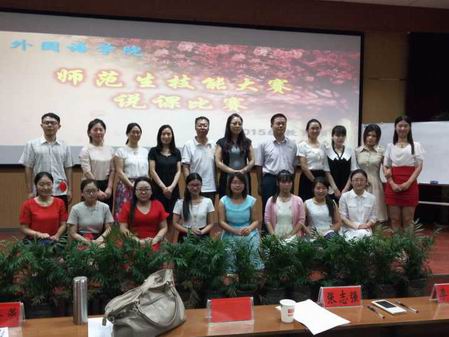 为贯彻落实“五五四”学风建设精神,提高研究生教学技能,6月16日晚,外国语学院在院报告厅举办2015级研究生教学技能大赛,我院张志强教授,刘国兵教授,李素枝教授,娄宝翠教授,孙海燕副教授担任本次比赛评委。