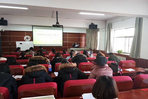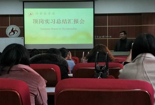 12月8日,外国语学院2014级顶岗实习总结汇报会于外国语学院国培教室举行。外国语学院副院长贾建嵩、教学秘书史晓伟、 团委书记唐新、2014级辅导员路玉及2014级全体顶岗实习生参加本次会议。