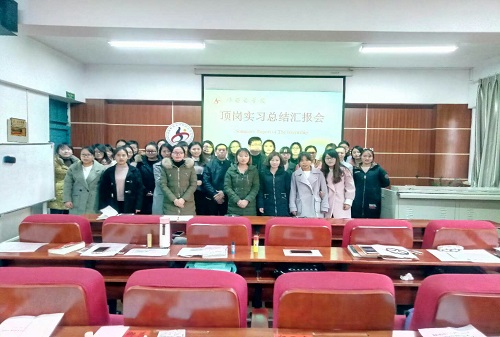 贾建嵩副院长对顶岗实习期间学生的辛勤付出与取得成果充分肯定,同时指出实习是工作的练兵场,对大家以后的工作具有重要意义。他表示,很高兴顶岗实习使同学们丰富阅历、收获经验、增长见识,他鼓励学生珍惜来之不易的三尺讲台,走好人生的每一步。