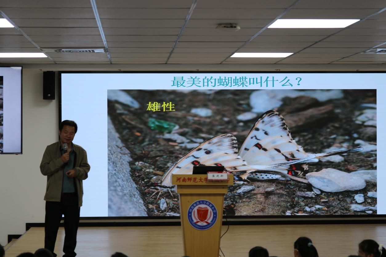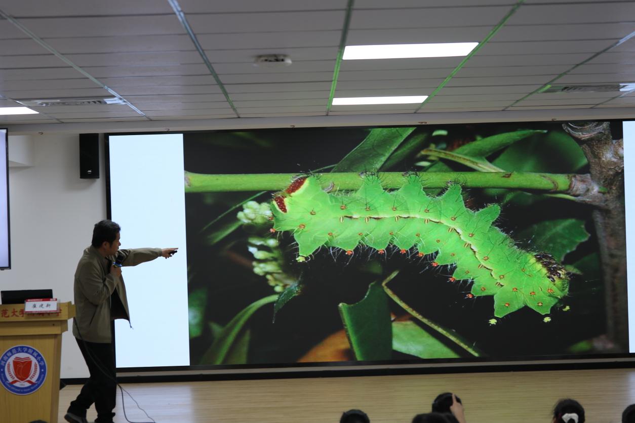 在近两个小时的报告中,崔教授以通俗易懂的语言带领我校师生走进奇妙的昆虫世界。他首先通过生动形象的讲解,帮助同学们建立起对昆虫的基本认知。随后聚焦蝴蝶这一美丽物种,从"世界最美的蝴蝶"到我国特有的珍贵蝶种,从蝴蝶的地理分布到其与人类文明的渊源,通过大量精美图片和科研案例,将专业学术知识转化为趣味盎然的科普故事。当展示蝴蝶翅膀显微结构图时,现场此起彼伏的惊叹声,将报告会推向高潮。