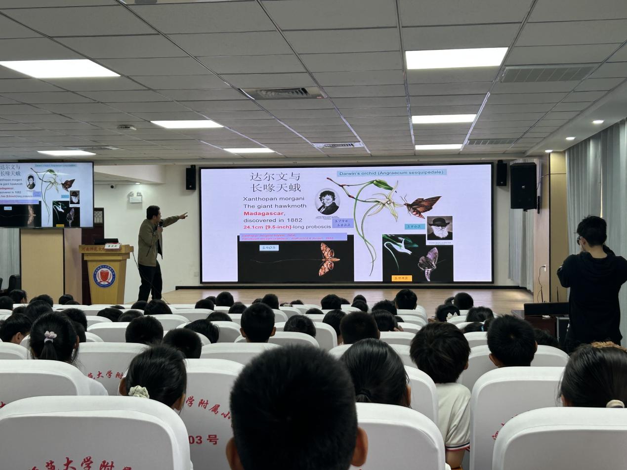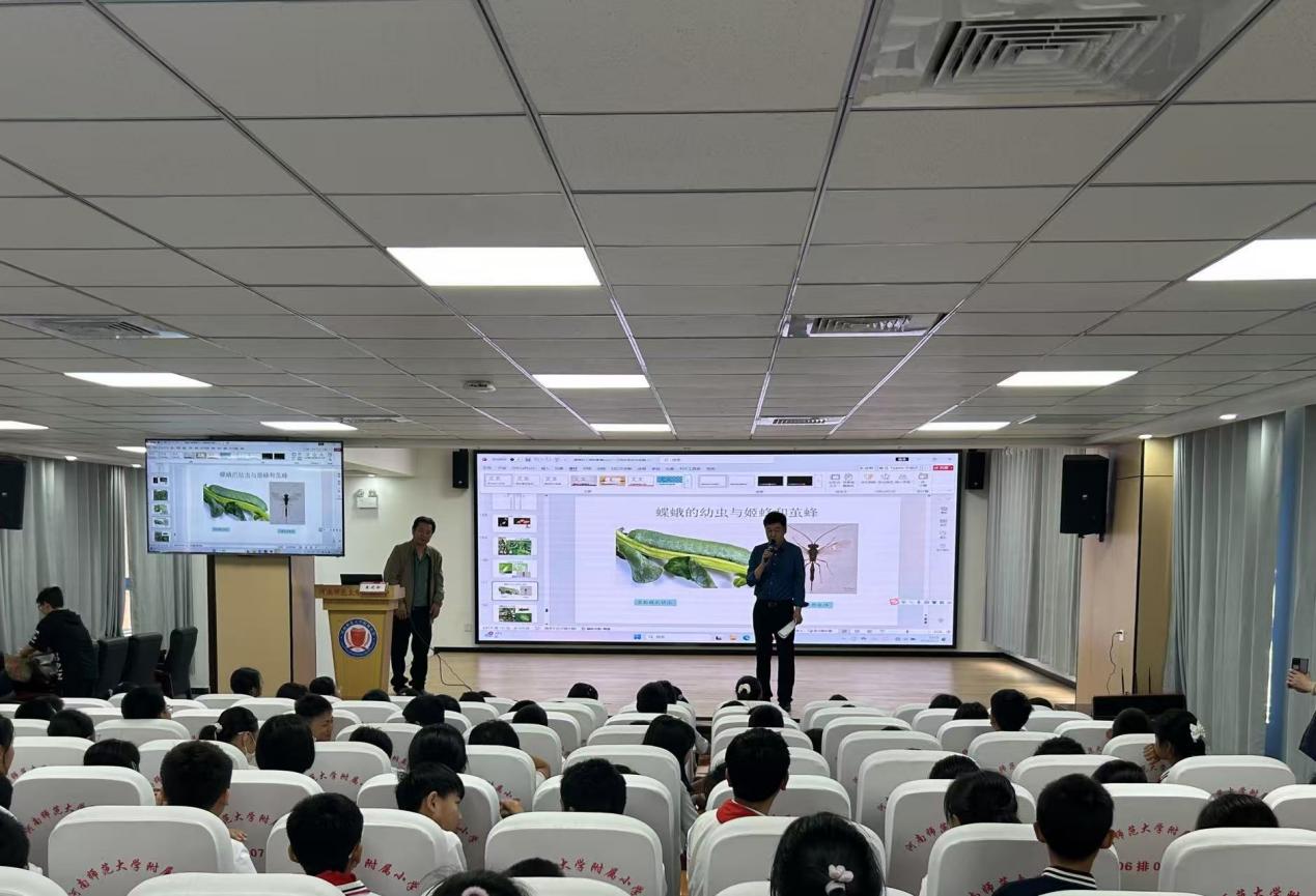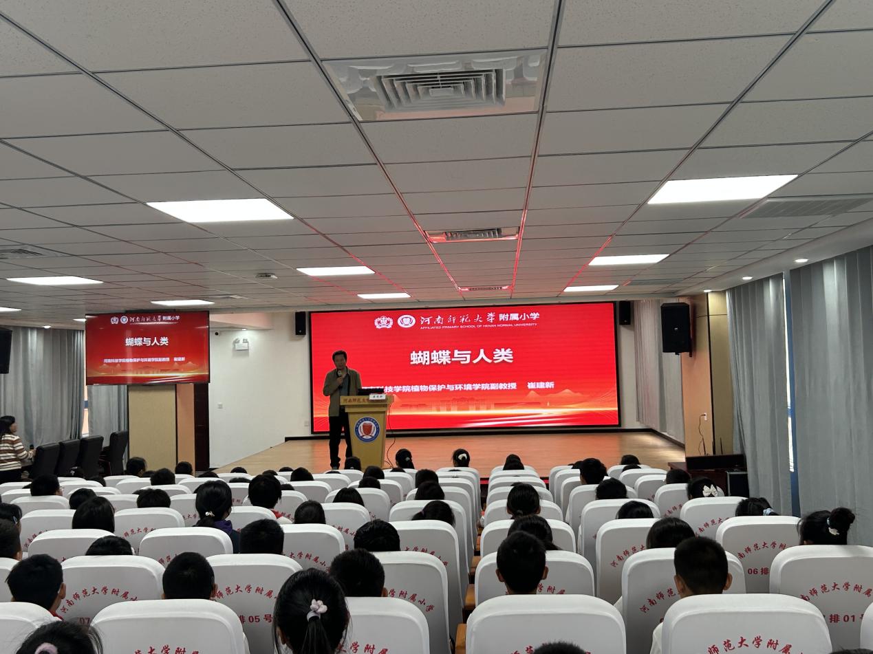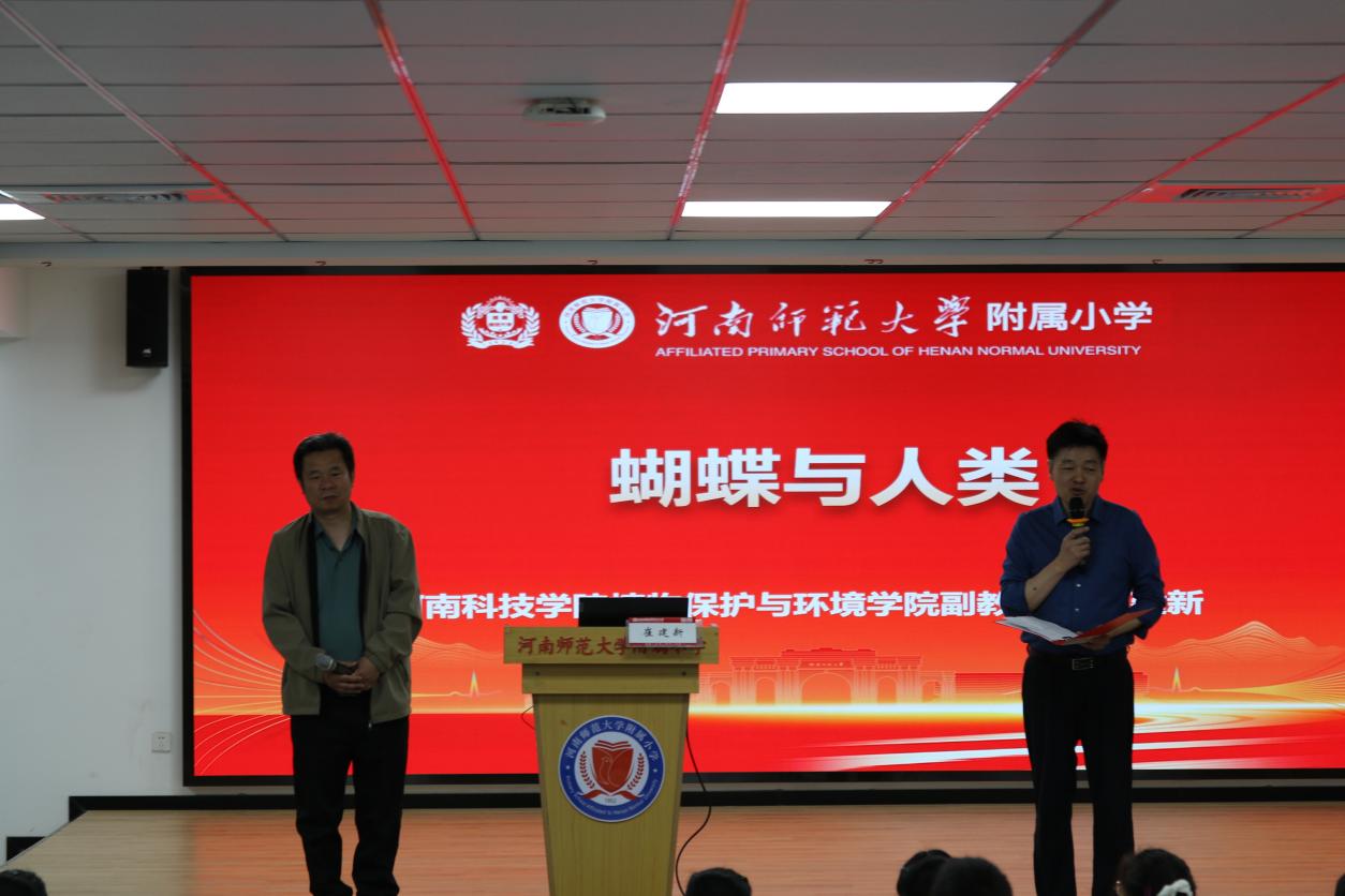 5月13日上午,河南师范大学附属小学迎来了一场别开生面的科普盛宴。河南科技学院植物保护与环境学院副教授崔建新应邀为师生作题为《蝶蛾与人类》的科学报告,本次活动由河南师范大学附属小学校长李万里主持,200余名师生共同聆听了这场充满趣味与知识的讲座。