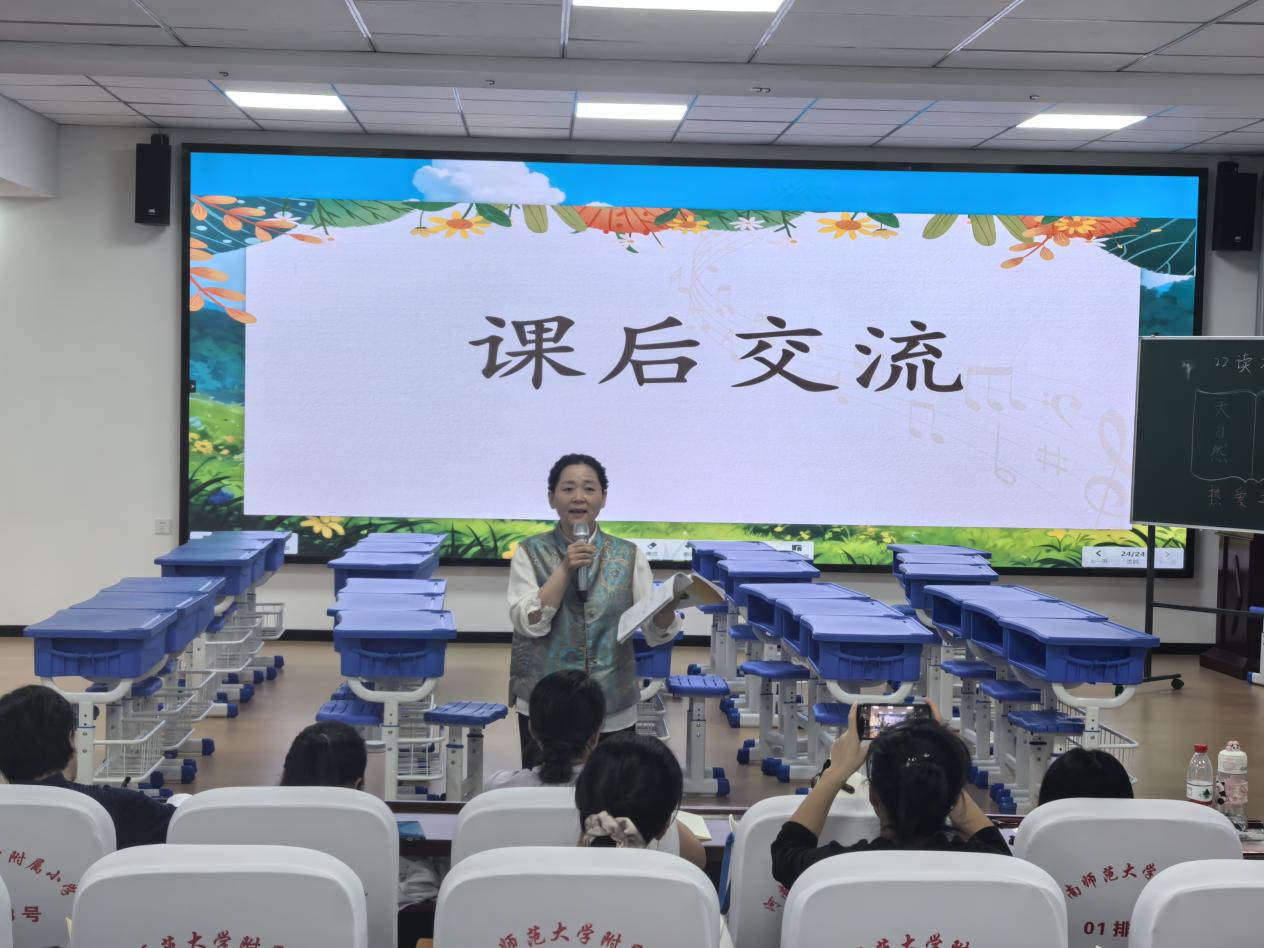 紧接着,赵逸璇老师带来了充满自然情趣的《读不完的大书》。赵老师巧妙引导学生聚焦文本语言,品读自然万物的“好玩”。她通过情景朗读、想象补白等策略,让学生在积极的言语实践中,感受文章生动的语言和细腻的观察,将课堂变为一场探索自然、启迪心灵的奇妙旅程。