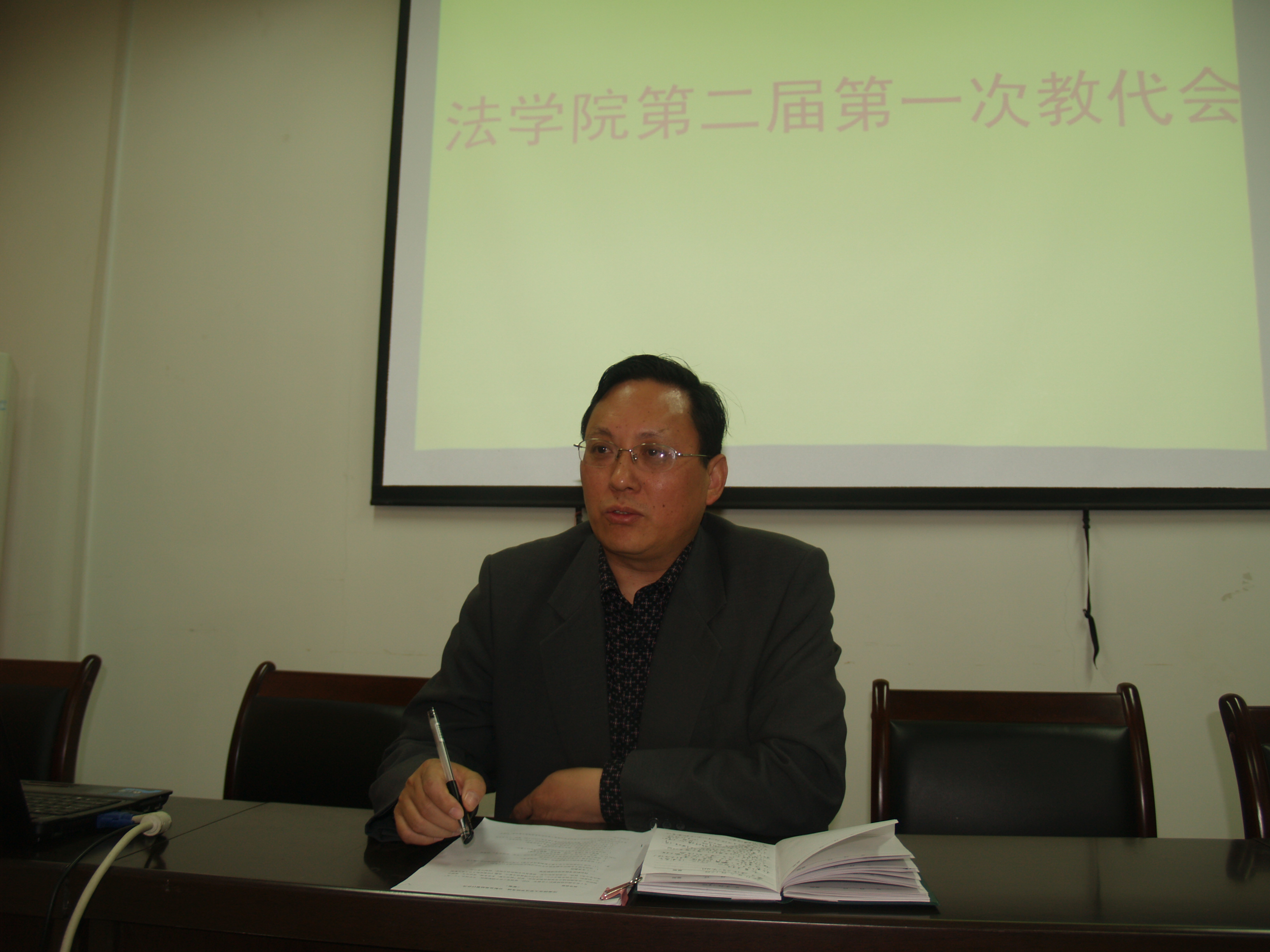 此次会议的主要议题是对《法学院考核、分配及奖励暂行办法》(草案)进行审议。法学院院长黄进才首先就暂行办法修订的背景、目的以及待审议草案的特点进行了说明,他指出,此次暂行办法的修订是为了更好适应“十二五”发展规划的需要,是学院由外延式发展向内涵式发展的需要,同时为了更好的为广大教职工谋福利;此次考核、分配及奖励暂行办法的修订广泛征集了广大教职工的意见和建议,对每位老师提出的意见,党政联席会都认真的进行了审议,逐条作出了回应,对好的建议给予了充分采纳,最大程度的代表了广大教职工的利益,充分体现了“按劳分配,多劳多得,效益优先,兼顾公平”的原则;此次《法学院考核、分配及奖励暂行办法》的成功修订,必将为学院进一步实现跨越式发展提供强有力的制度保证。接着,全体与会代表对《法学院考核、分配及奖励暂行办法》(草案)进行了审议,并进行了举手表决,最终,《法学院考核、分配及奖励暂行办法》(草案)获得了全票通过。最后,学院党总支书记谢华作总结发言,对其意义进行了充分肯定。