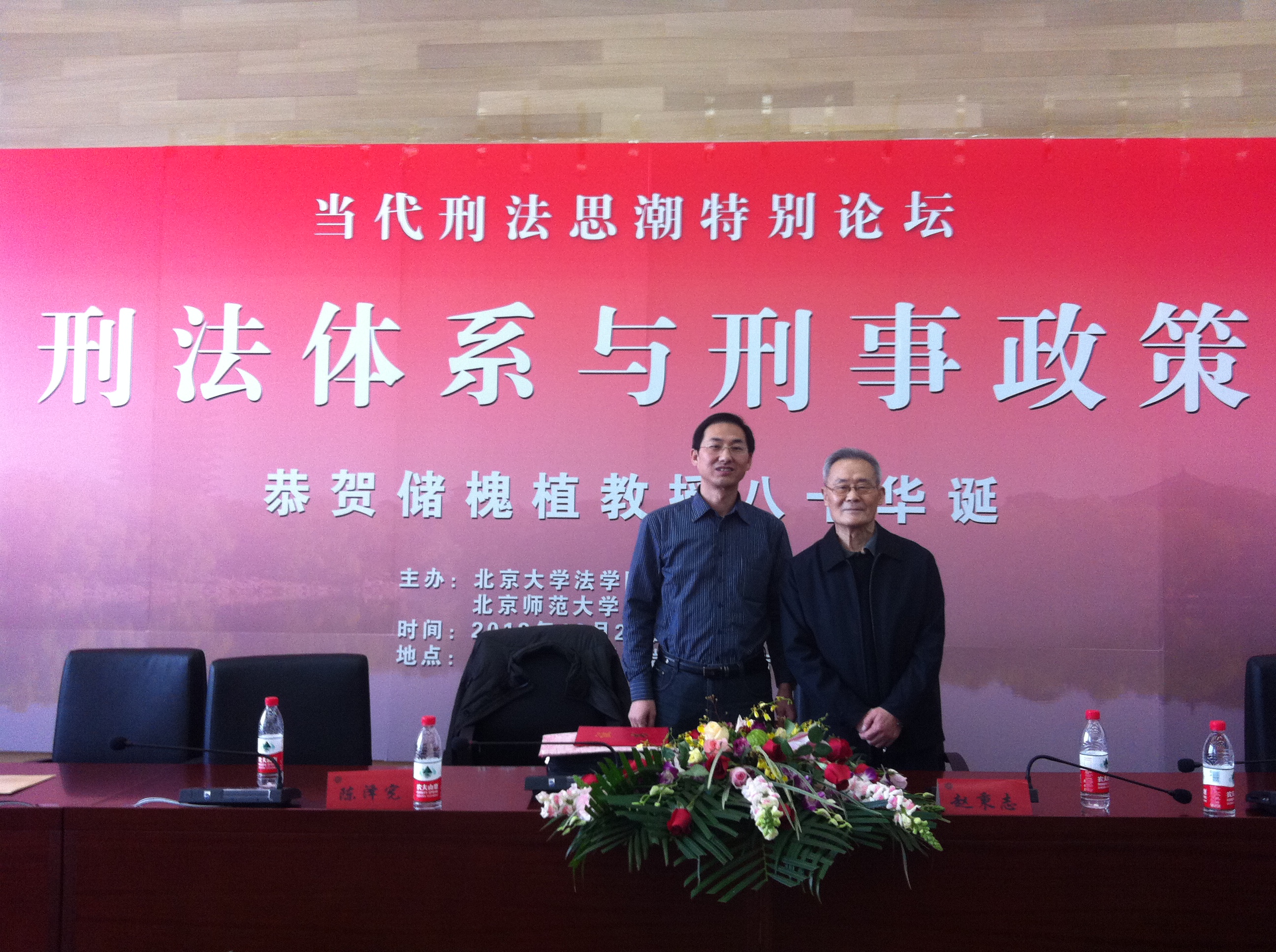 储槐植教授1955年毕业后分配至北京大学任教,历任讲师、副教授和教授,1994年起获聘博士生导师,系北大刑法学科的奠基人之一,对北大法学学科的发展功勋卓著。2003年从北大退休后,本着对全国刑法学事业发展的热心与支持,于2005年北师大刑科院成立时即欣然担任北京师范大学刑事法律科学研究院特聘教授,为刑科院近年来的跨越式发展做出了重要的贡献。先生的著述横贯刑事学科,代表性的有《美国刑法》、《刑事一体化与关系刑法论》等著作近二十余部,《建立刑事一体化思想》、《严而不厉:为刑法修订设计政策思想》等论文百余篇。