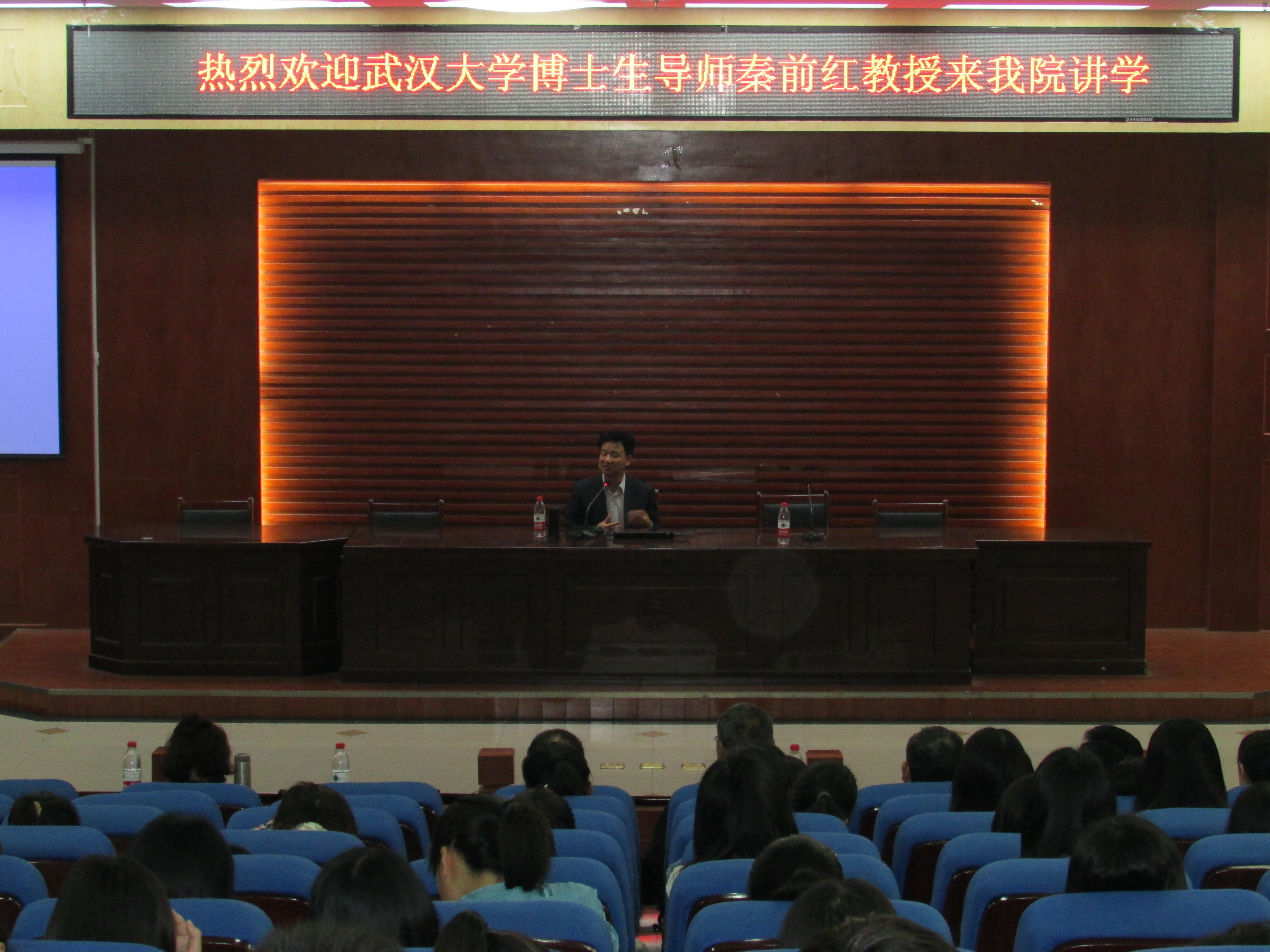 4月29日,中国法学会宪法研究会副会长、中国法学会比较法研究会常务理事、湖北宪法研究会副会长,武汉大学博士生导师秦前红教授应邀来到我校,在东区模拟法庭为法学院师生做了一场题为“改革与法治:宪法的若干前沿问题研究”的专题讲座。讲座由法学院副院长王鹏祥教授主持,法学院全体教师、研究生和部分本科生参加并聆听了本场讲座。