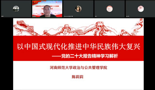 为教育引导广大干部师生全面准确领会党的二十大精神,按照学校的部署要求,12月20日下午,生命科学学院、法学院、美术学院联合举办学习宣传贯彻党的二十大精神宣讲报告会,校内专家宣讲团成员、政治与公共管理学院副教授陈莉莉作宣讲报告,法学院党委书记张壬主持报告会,相关学院领导、教师参加会议。