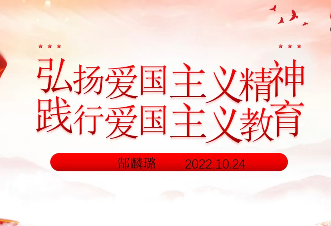 随后,郜麟璐带领大家学习爱国主义精神,并进行了爱国主义教育,引导我们广大青年不仅要从思想上爱国,更要投身于爱国主义的实践,为我国建设成为富强民主文明和谐美丽的社会主义现代化强国而不懈奋斗!