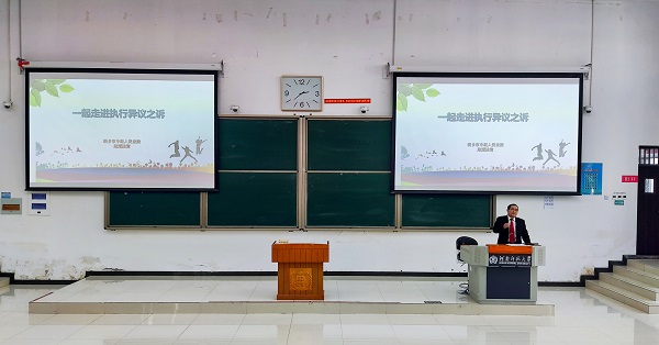 为加强学生对法官实务的了解,3月28日,我院邀请新乡市中级人民法院执行裁决庭副庭长赵斌法官,为同学们讲授《一起走进执行异议之诉》一课。
