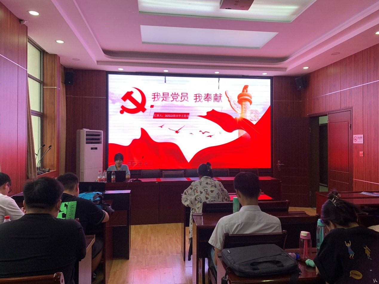 6月20日上午研究生党支部“党建小课堂”第十六讲开讲。2021级法学班连鹿鸣、2022级法学班王思佳、2022级法学班时帅分别以《学习党的二十大精神之以中国式现代化推进中华民族伟大复兴》《我是党员我奉献》和《百年党史风华正茂,万里长征精神永传》为题进行分享。