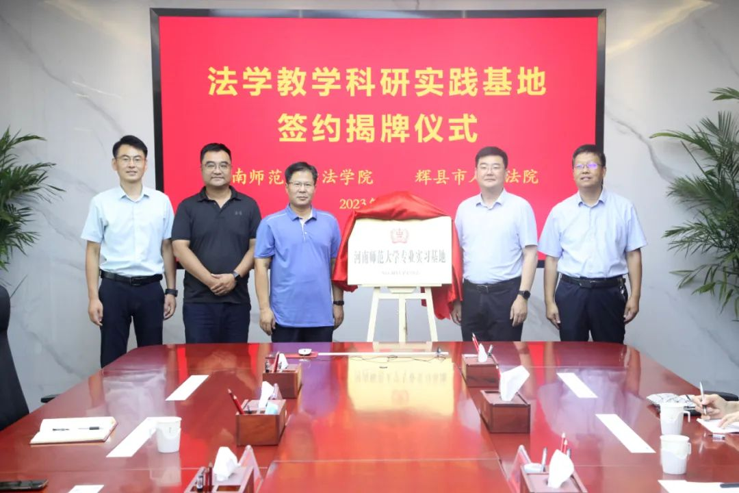 为进一步加强法学教研工作与司法审判实务融合互补,8月7日,河南师范大学法学院与辉县市人民法院合作共建“法学教学科研实践基地”正式挂牌成立。法学院院长于庆生、副院长胡光,辉县法院党组书记、院长刘志飞,党组成员、政治部主任王新恒等出席签约挂牌仪式。