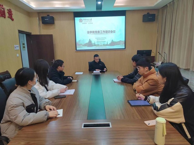 为提升学院党务工作者的理论水平和实践能力,不断推动学院党建标准化规范化信息化工作,12月7日晚,法学院党委在崇法楼303会议室召开党务工作培训会议。会议由党委组织员赵东方主持,党务助理杨浩天、王梦瑶、楚玉甜、李怡林、郝石磊、魏斌参会。