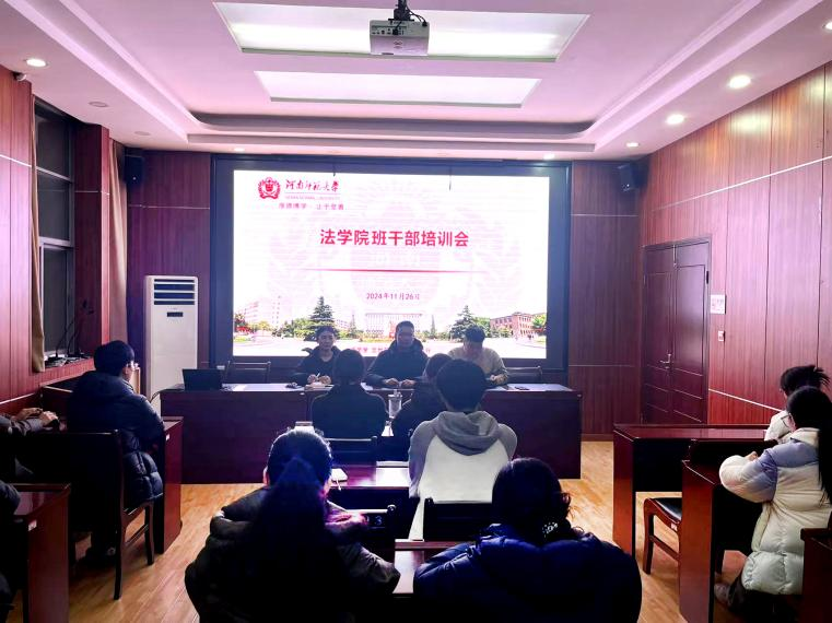 为进一步提高班干部的综合素质和团结协作能力,加强年级建设和班级管理,发挥学生干部示范带动作用,法学院于11月26日晚举办班干部培训交流会。学院全体班干部参加会议,本次培训由2022级专职辅导员杨俊主持。