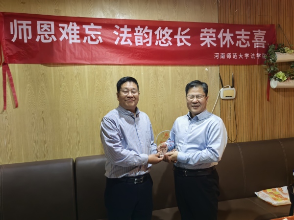于庆生致辞,他介绍了张荣现老师的在法学院期间的工作情况,回顾了与张荣现一起工作的美好时光。他表示,张荣现老师自大学毕业即留校参加工作直至荣休,主要讲授《侵权行为法》《婚姻与继承法》,授课课方式灵活,语言幽默,擅长将法学理论与司法实践相结合,深入浅出,深受广大学生的喜爱,培养了许多优秀的学生。他对张荣现为学院的教学、科研和学生培养作出的贡献表示感谢,希望张荣现老师继续关注和支持学院发展。与会教师代表也向荣休教师表达敬意与祝福,回忆了一起学习、工作的难忘时光。河南师大广东校友会法学分会会长杜婷婷、1999级校友胡军、2007级校友刘自奇等分别向张荣现老师表达了上学期间的培养、教导和感激之情。张荣现老师深情回忆了自大学毕业留校参加工作到荣休近四十年的鎏金岁月。他建议年轻教师要研究专业,搞好教学,站好三尺讲台,为学生的成长、成才和发展贡献力量。张荣现表示,一个人的成长与进步,良好的心态和健康的身体是最为重要的基石。他勉励各位校友,“昨天年轻是因为年龄,今天年轻是因为心态,明天年轻是因为快乐,一辈子年轻是因为健康”。张荣现表达了对学院和同仁的不舍之情,对深圳校友的精心组织表示感谢。