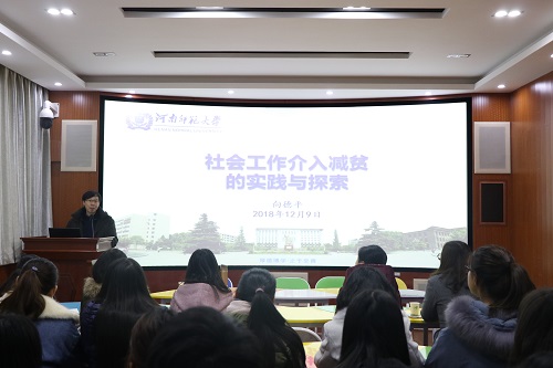 12月9日上午,应学院邀请,武汉大学社会系教授、博士生导师向德平于学院办公楼503报告厅作了题为“社会工作介入减贫的实践与探索”的学术报告。学院教师和本科生代表共50余人聆听了本次报告会。