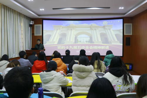 为深入学习贯彻党的十九届五中全会精神,12月20日上午,我院在崇智楼503室举行党的十九届五中全会宣讲报告会。学院全体专兼职辅导员、教师和学生党员代表参加会议。报告会由学院党委书记瞿洪明担任主讲。