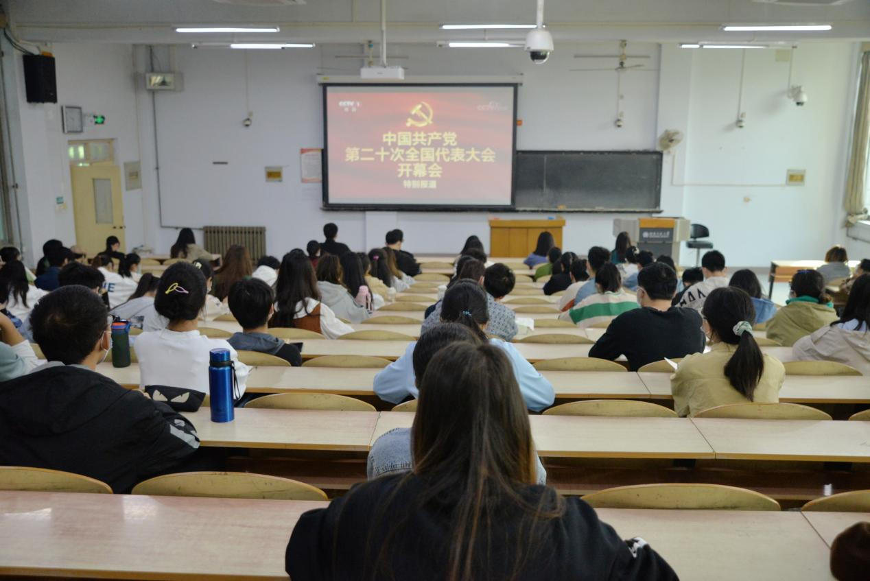 10月16日上午,中国共产党第二十次全国代表大会开幕会在在北京人民大会堂召开。习近平总书记代表第十九届中央委员会向党的二十大作报告。学院全体师生在会议室、教室、宿舍、家庭等利用电视、电脑、手机收听收看开幕式盛况。