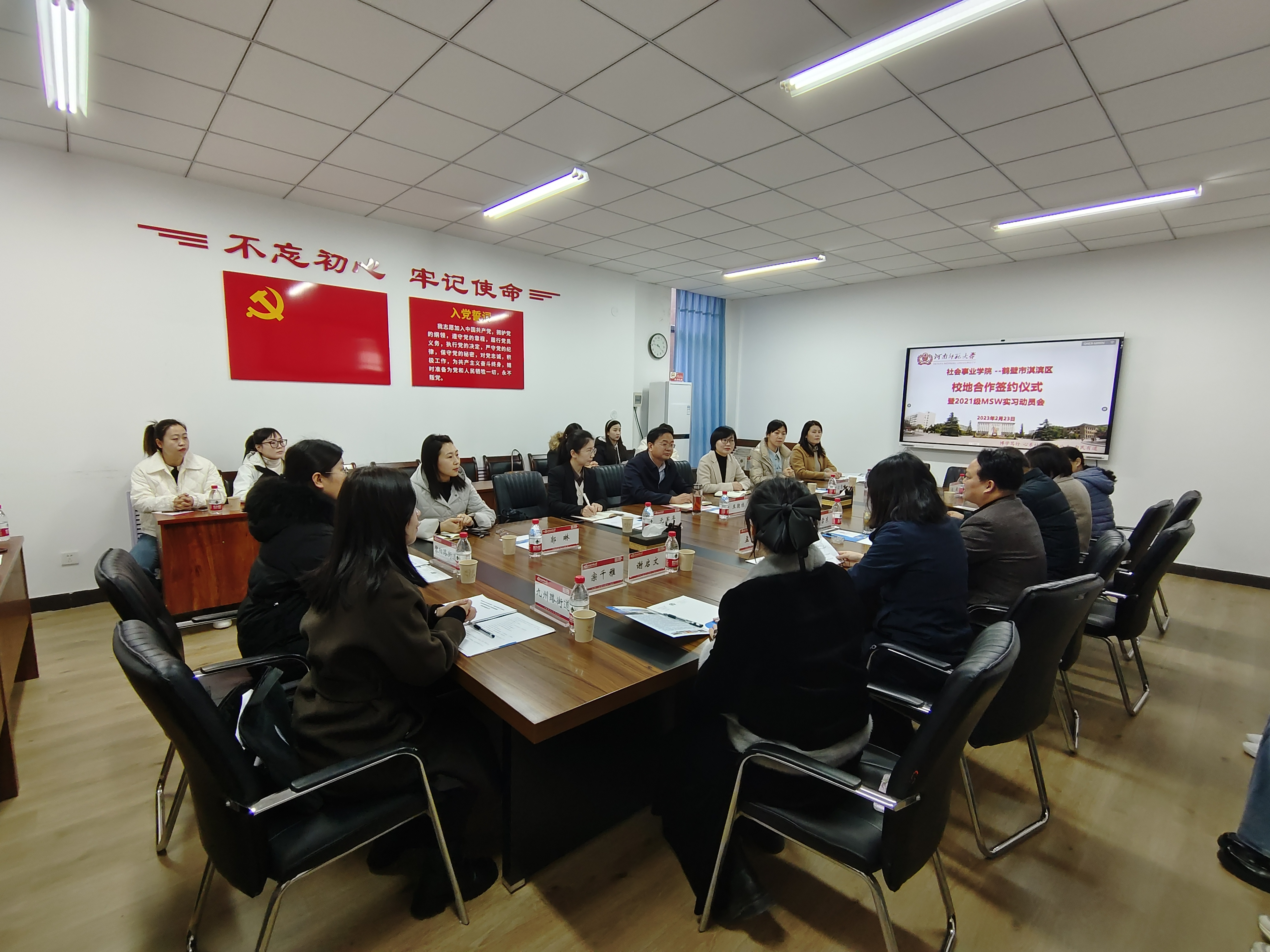 2月23日上午,社会事业学院与鹤壁市淇滨区联合举行校地合作签约仪式暨2021级MSW实习动员会。鹤壁市淇滨区委常委、组织部部长王朝栋,区人民政府副区长高志芳,城市社会治理和社区服务局局长元军平,校党委研工部副部长、研究生院副院长马春旺,社会事业学院院长魏雷东,淇滨区社区服务中心及街道办事处代表,学院教师代表、2021级全体社会工作研究生参加会议。会议由社会事业学院副院长孟利艳主持。