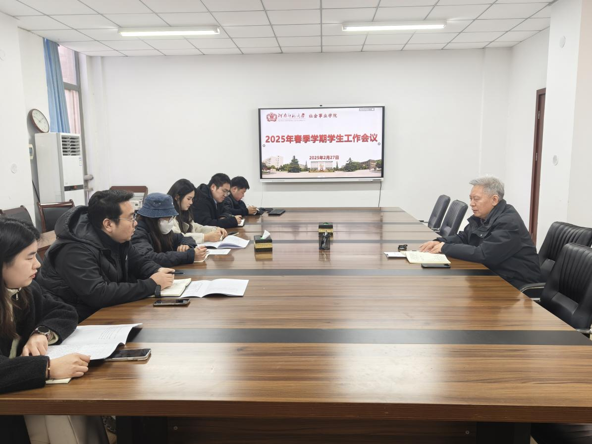 为全面部署新学期学生工作,奋力开创学院学生工作新局面,2月27日上午,社会事业学院在崇智楼210会议室召开新学期学生工作会议。会议由党委副书记林安春主持,全体专兼职辅导员参加了本次会议。