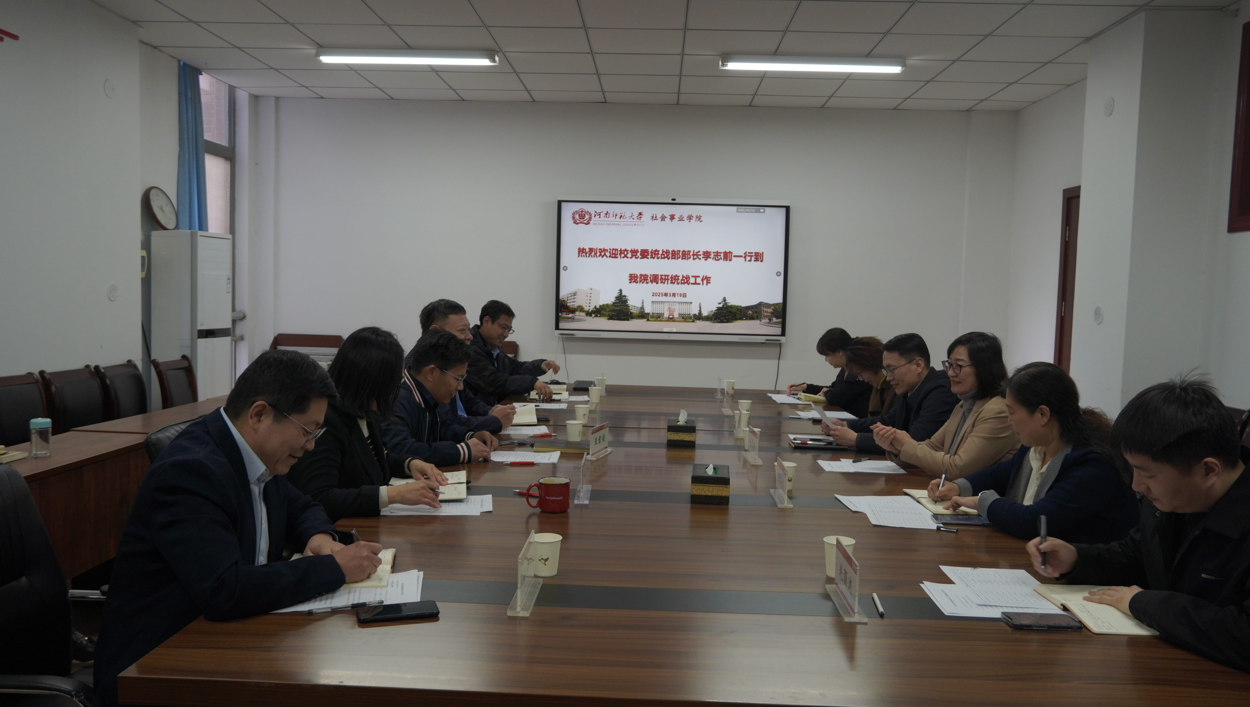 3月19日下午,校党委常委、统战部部长李志前一行赴社会事业学院调研统战工作,社会事业学院领导班子,民主党派教师代表参加座谈会。