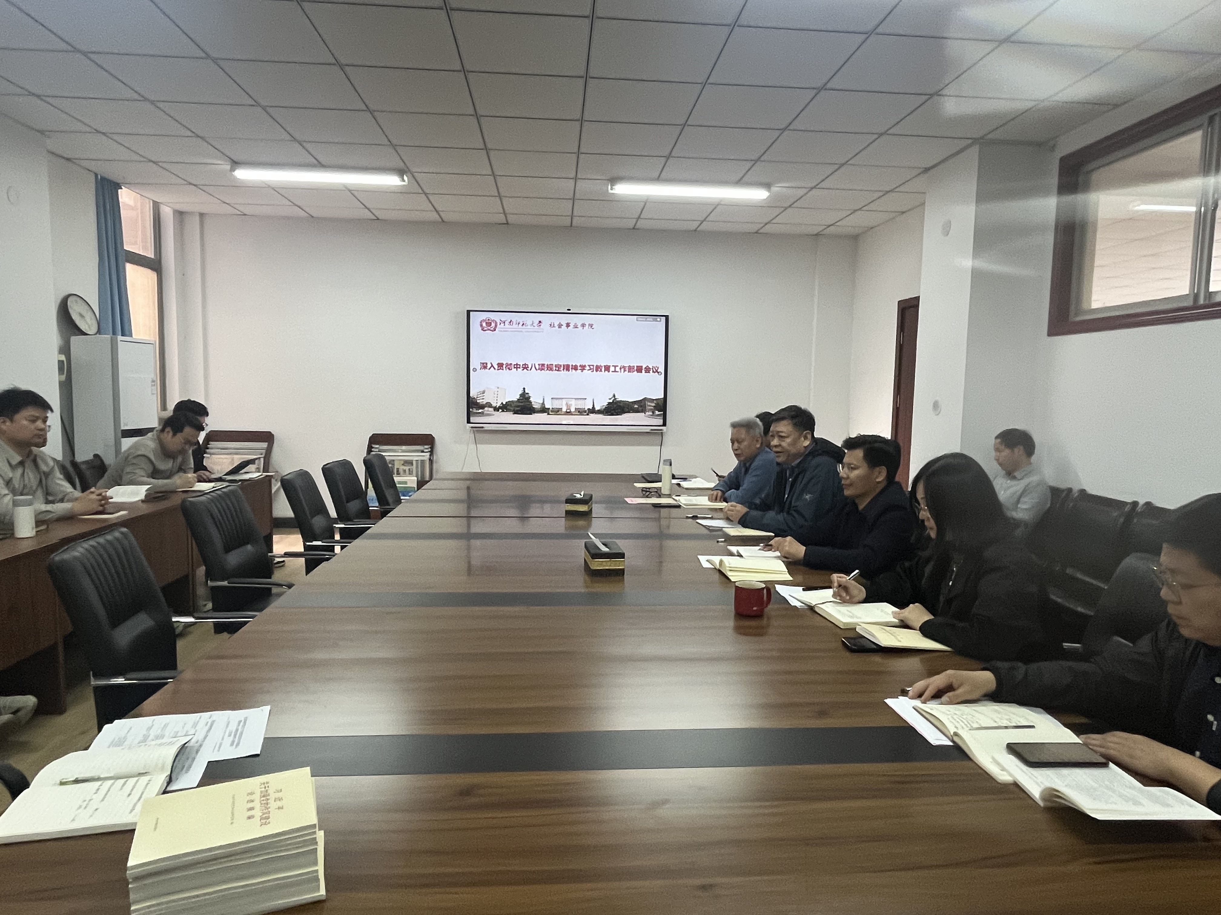 3月21日下午,社会事业学院党委在崇智楼210会议室召开深入贯彻中央八项规定精神学习教育工作部署会。社会事业学院领导班子、党委委员、党支部书记参加会议。会议由社会事业学院党委书记张向东主持。
