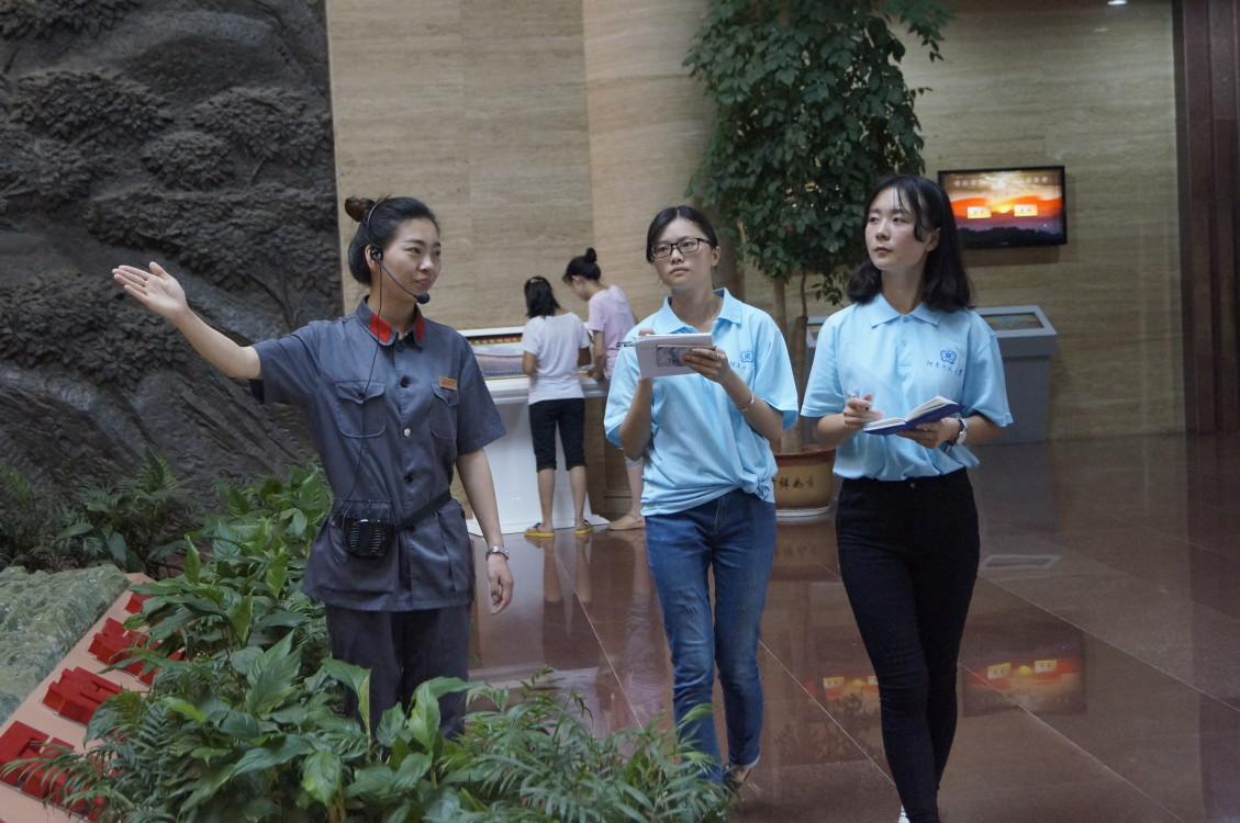 下午4时,团队指导老师黄博琛及推介队队员集体参观鄂豫皖苏区首府革命博物院。入馆后,习近平同志的:"把红色资源利用好,把红色传统发扬好,把红色基因传承好"首先垂入眼帘。之后,在讲解员热情详细地讲解下,队员们了解到,新县曾开展土地革命,虽经济贫困,却家家烈士迭出,革命形势风起云涌,如火如荼。在这座博物院里,将帅馆独领风骚,它是全国唯一一所集中反映鄂豫皖苏区开国将士的专题展馆,里面有集体群塑雕像一面,镌刻着349位将士的肖像面容,其皆为1955年授衔时的存活将士。据了解,本博物馆是河南省规模最大的县级博物馆,被中宣部公布为全国爱国主义教育示范基地,是国家二级博物馆和4A级景区。