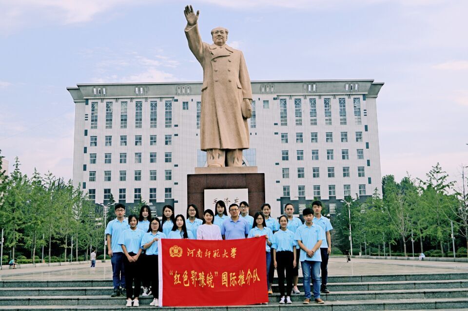 “把红色资源利用好,把红色传统发扬好,把红色基因传承好。”当天下午,在带队老师黄博琛带领下,红色鄂豫皖国际推介队按照行程安排,考察探访了鄂豫皖苏区首府革命博物馆。在讲解员代表韩兰的生动讲授中,实践队员们了解到,新县曾开展革命运动,虽经济贫困,却家家烈士迭出,革命形势风起云涌,如火如荼。在这座博物院里,将帅馆独领风骚,它是全国唯一一所集中反映鄂豫皖苏区开国将士的专题展馆,里面有集体群塑雕像一面,镌刻着349位将士的肖像面容,其皆为1955年授衔时的存活将士。据了解,本博物馆是河南省规模最大的县级博物馆,被中宣部公布为全国爱国主义教育示范基地,是国家二级博物馆和4A级景区。