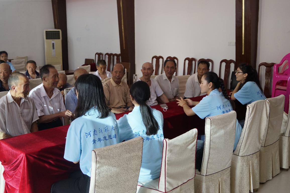 院长对实践队员的来访表示热情欢迎,并介绍道,新县光荣院是河南省唯一的一所光荣院,多年来承担着照顾退伍军人、革命烈士遗属和老红军们的晚年生活工作,以优化严格的管理制度,不断强化的服务意识,用百倍的爱心、诚心和耐心,守护着生活在这里的每一位老人。为了同学们零距离、全方位、多角度的学习参观,院长将各位老兵们请到大厅与实践队员分享交流抗战故事。