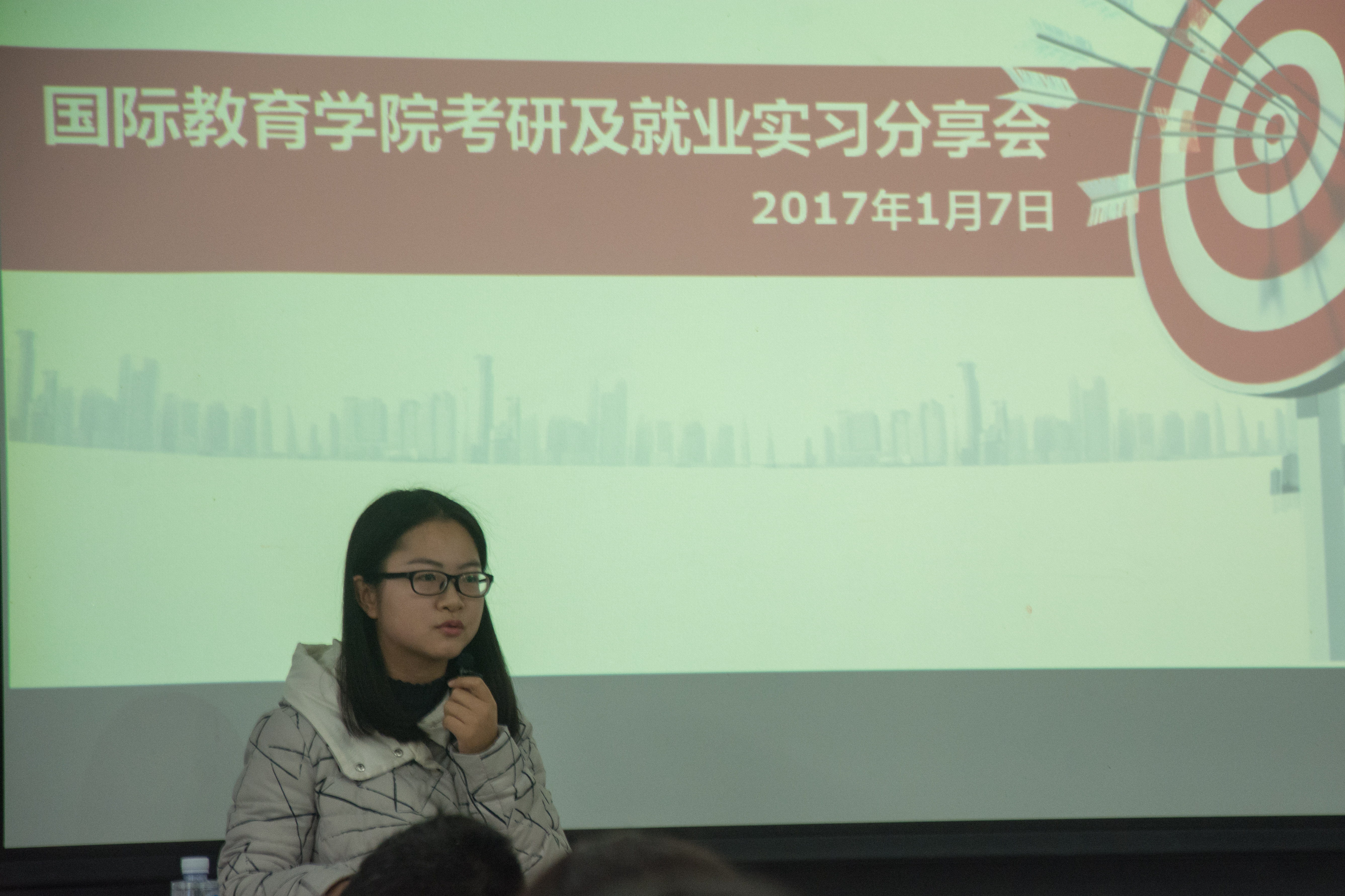 1月7日上午,国际教育学院在田家炳207教室成功举办了考研与就业实习分享会。本次分享会邀请了2013级的四位同学和2014级酒店管理专业的六位同学分享了考研备考经验和就业实习的心得体会,2014级辅导员和本年级同学参加了分享会。