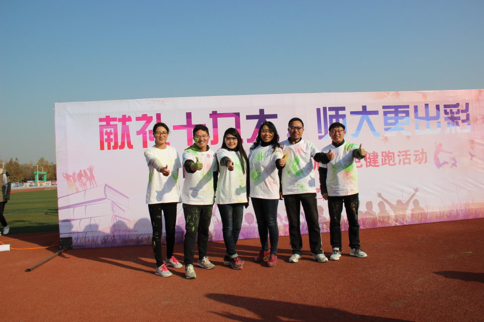 11月12日上午,国际教育学院工会、团委在东校区举行主题为“献礼十九大,师大更出彩”首届师生彩色健跑活动。国际教育学院党政领导、教职工和150余名同学共同参加。