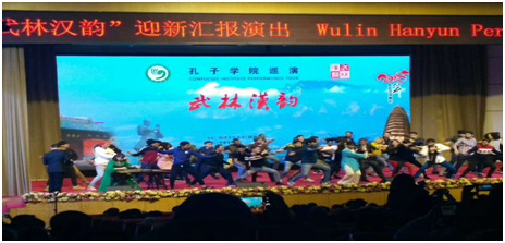 为展示中华文化自信,服务海外孔子学院内涵建设,在孔子学院总部、国家汉办支持下,河南省教育厅、河南汉办结合河南传统文化优势倾力打造国家汉语国际推广品牌节目“武林汉韵”。 迄今为止,“武林汉韵”已赴几十个国家巡回演出。2017年12月17日,“武林汉韵”汇报演出在郑州47中举行,河南师范大学作为“武林汉韵”举办单位之一,受邀参加此次盛会。我校国际教育学院老师及留学生代表一行12人赴郑州观看演出。