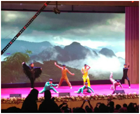 河南省教育厅领导,河南汉办主任,全省46个单位86名代表及16所高校645名留学生代表观看了此次演出。节目精彩纷呈:“功夫动物”里的形象拳让人惊叹不已,“舞”与武的结合十分吸引眼球,精彩的武术表演让现场气氛推向高潮,太极和功夫完美结合是绝对的视觉盛宴,我校王洪亮老师的笛子独奏用悠扬的笛声诉说着中原文化的历史悠久,中华文化的深厚底蕴。