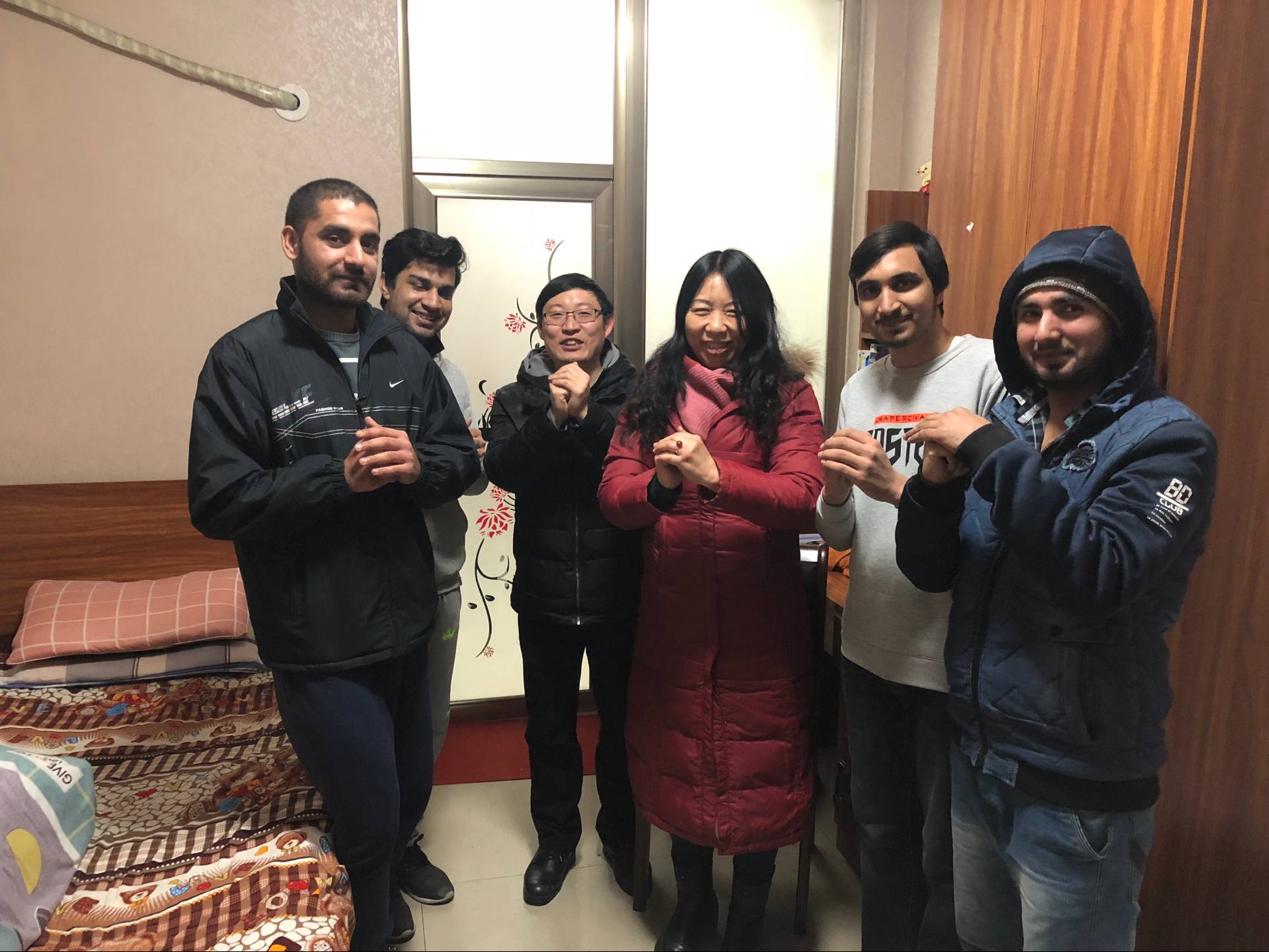 陈院长一行与留校留学生亲切交谈,详细了解了寒假两周来他们的生活和学习情况,并从春节的意义和习俗两方面向他们介绍了中国传统春节文化,现场气氛热烈、温馨。接下来陈院长叮嘱各位同学要充分利用假期做好总结、思考和规划,为新学期的学习和工作做好准备。要遵守学校的假期管理规定,增强责任意识、防范意识与安全意识,注意寒假和春节期间的人身安全、财产安全以及消防安全。最后陈院长一行亲手教会了他们中国传统的拜年方式——抱拳礼,并代表学院向各位同学送上新春祝福。