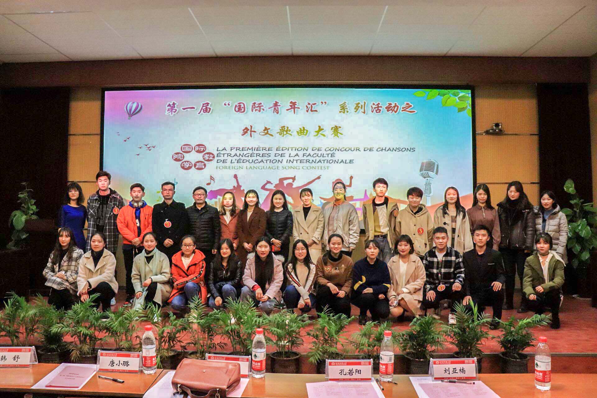 为响应“国际青年汇”号召,丰富校园文化生活,营造积极向上、健康文明的校园文化氛围,11月20日晚,国际教育学院团委、学生会在外国语学院报告厅成功举办了第一届“国际青年汇”外文歌曲大赛。外国语学院法语系花蕾老师,国际教育学院团委书记韩舒,2018级法语专业班主任唐小璐,2018级辅导员孔若阳,2017级兼职辅导员刘亚楠担任评委,200余名学生共同观看此次比赛。