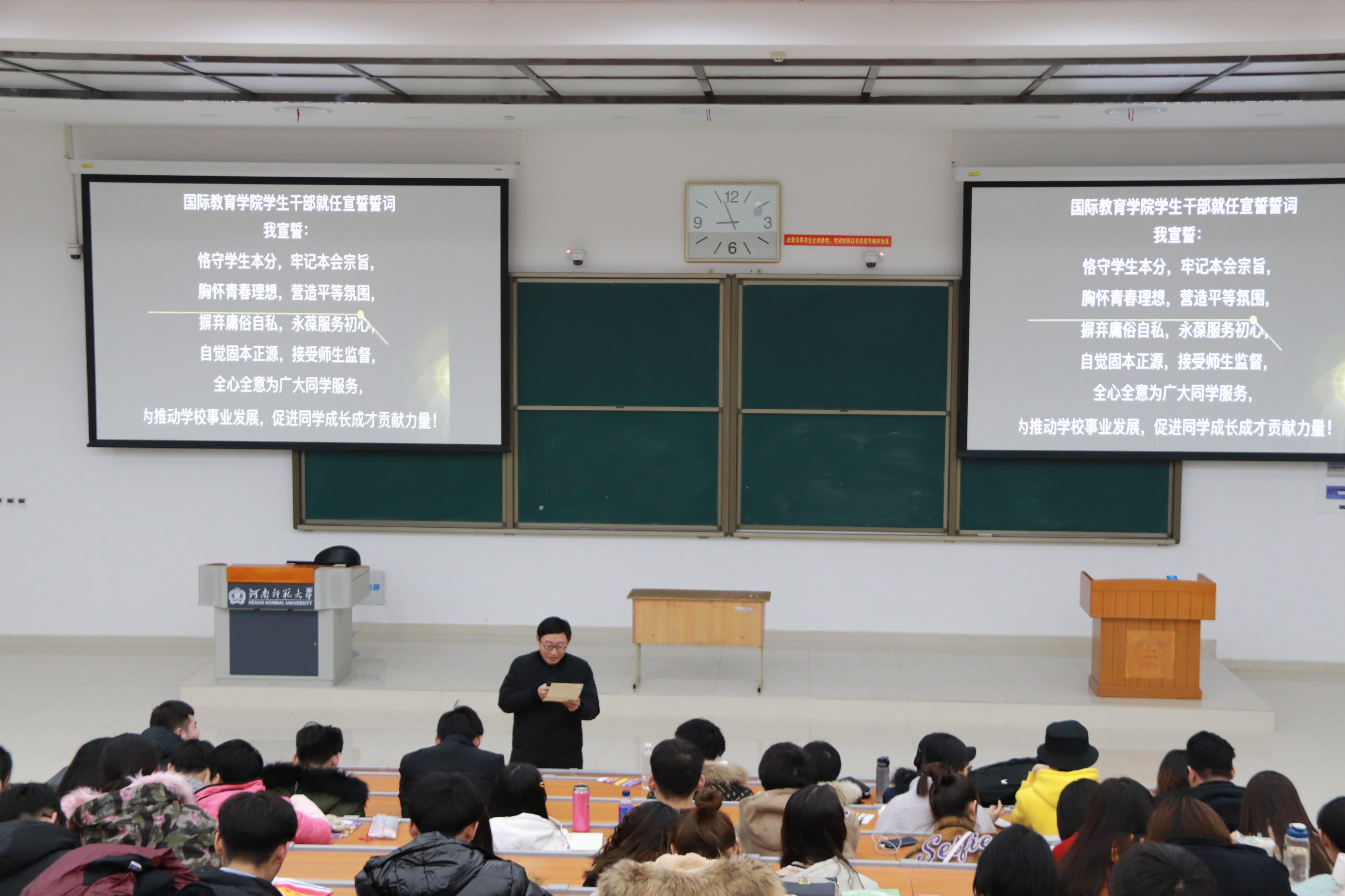 国教人,重团结,敢担当。本次国际教育学院团委、学生会宣誓就职仪式暨工作总结大会的成功举办,不仅为学院团委、学生会注入了新的活力,也使新一届成员明确了工作职责,树立了工作目标,增添了工作动力,为推进学院团学工作发展奠定了基础。