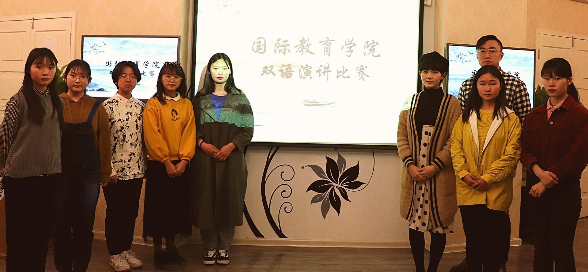 为庆祝祖国七十周年华诞,感受中国人民七十年奋斗历程,4月3日晚,国际教育学院于活动室成功举办主题为“精育良才立示范,礼献建国七十载”双语演讲比赛初赛,本次比赛共有我院2017级、2018级共计10名选手参加,国际教育学院2018级辅导员孔若阳及国际教育学院拥有丰富演讲经验的学生到场观赛参评。