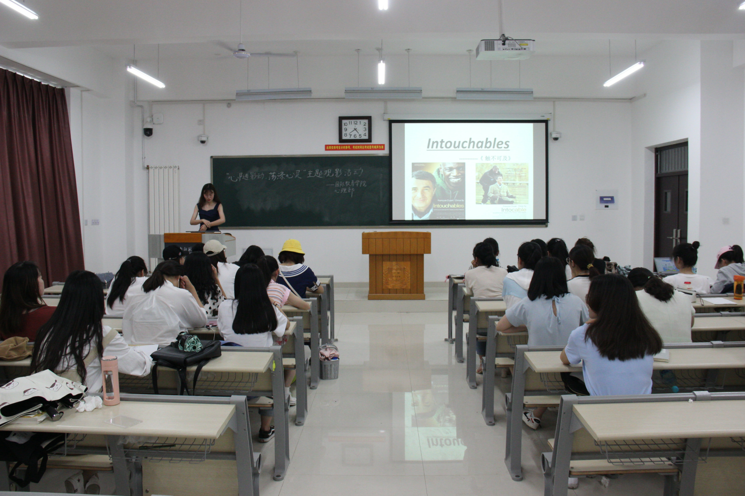 在“5.25”全国大学生心理健康日来临之际,为积极响应校心理健康宣传月的号召,按照国际教育学院心理健康宣传月的工作计划,切实引导学生重视心理健康,培养理性平和的积极心态,5月25日晚,国际教育学院在东区综合楼418教室开展了“心随影动,荡涤心灵”主题观影活动,2018级学生80余人参加了此次活动。