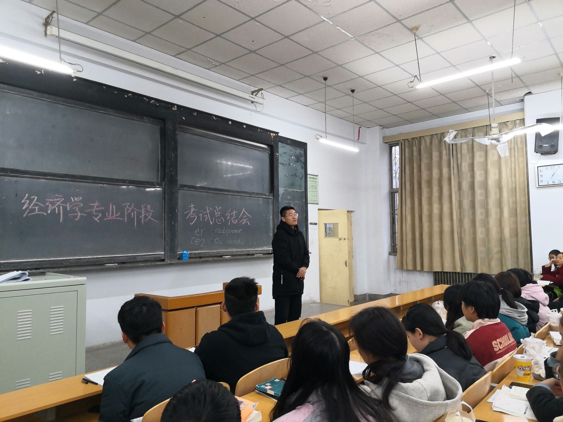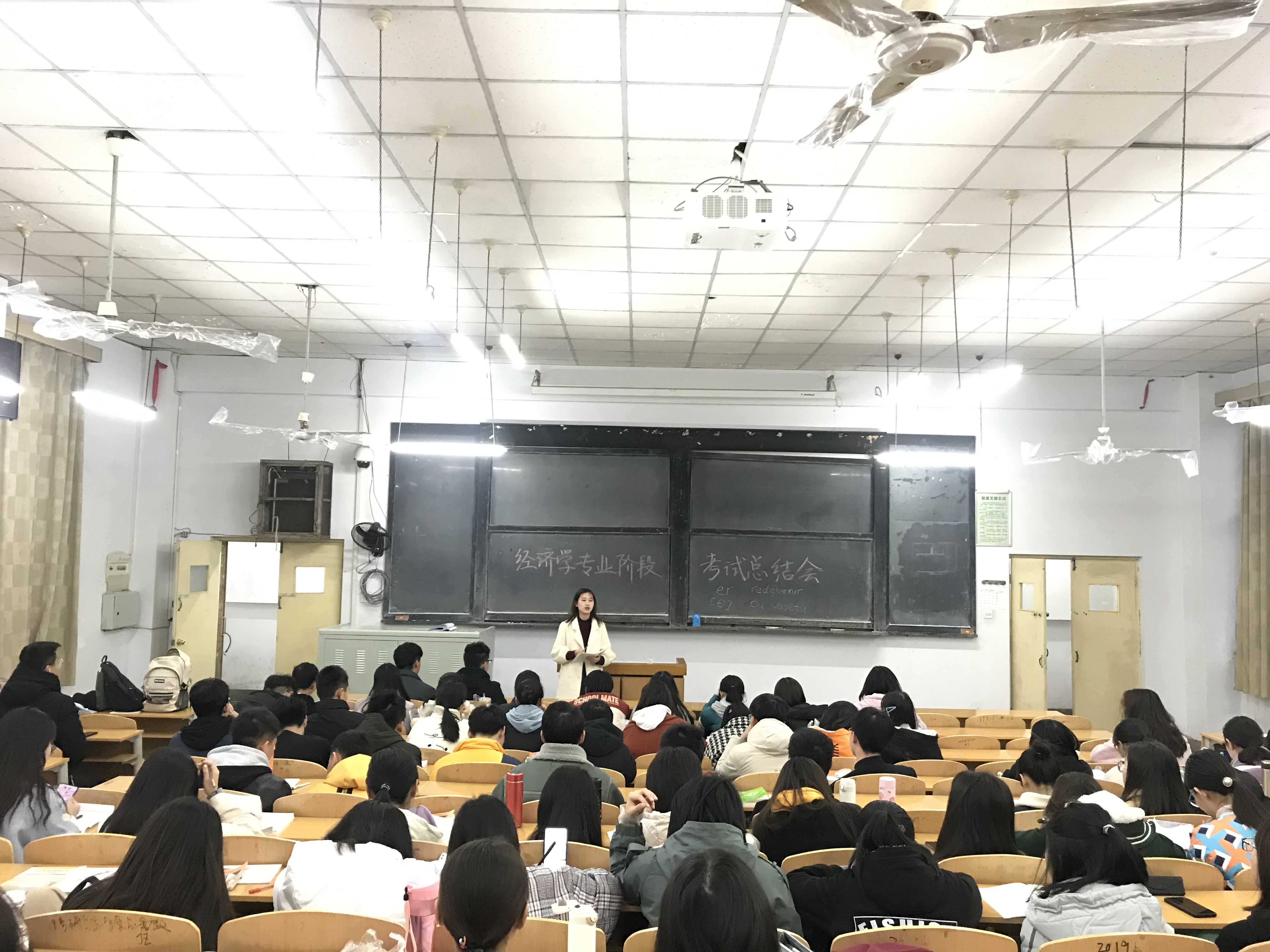 交流经验,吸取教训,共创辉煌。11月22日,国际教育学院经济学专业于文渊楼220教室举行阶段性考试总结会。国际教育学院2019级经济学专业兼职辅导员范琪琦,2017级优秀学生代表张正旗,2019级经济学专业副班主任及2019级经济学专业全体学生到场参加本次总结会。