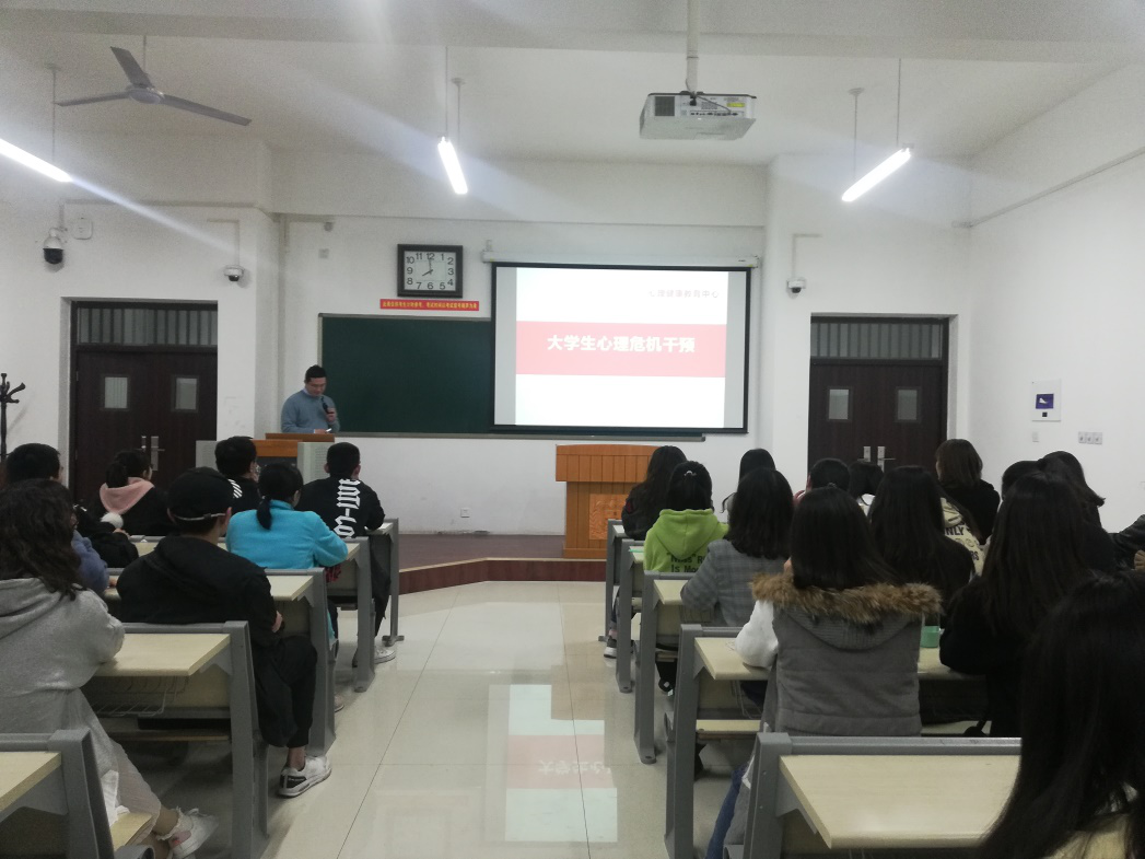 2019年11月15日晚上,国际教育学院在东区综合楼406教室召开大学生健康培训会。培训会由国际教育学院二级心理工作站负责人武光辉老师老师主讲,国际教育学院各班心理委员和宿舍长100余人参加培训。