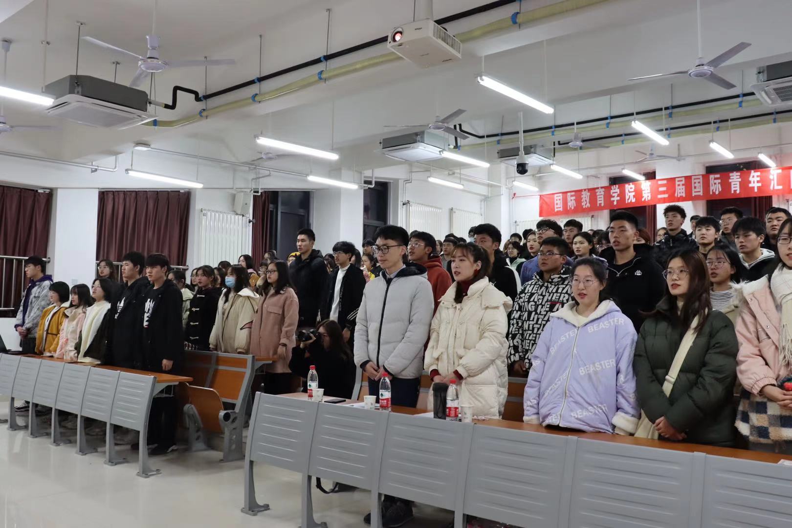 国际教育学院第三届“国际青年汇”闭幕式于11月30日晚在东综教学楼举行,党总支书记田小勇,党总支副书记白丽,团委书记韩舒,2018级辅导员孔若阳,2020级辅导员丁延敏出席,国际教育学院百余名学子参加仪式。仪式由韩舒主持。