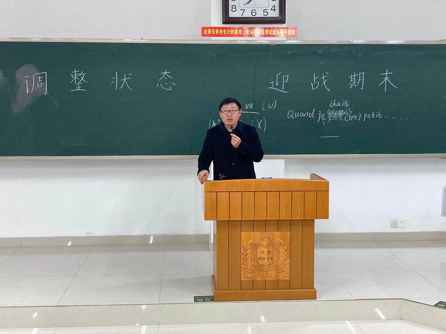 最后,2019级辅导员韩舒针对本次会议做出总结:一是希望大家在本次考试后,认真反思、扎实复习;二是要严格考勤,严明纪律。最后他以“信心“为结束词,希望大家在法语学习中不畏难、不退缩,坚定信念,迎战期末考试。